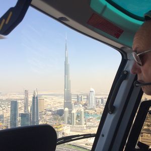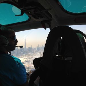 新婚旅行でドバイにいったときに夫婦で参加しました。体重測定の結果、幸運にも私たちは前の座席(パイロットのすぐ隣)に座らせてもらいましたので、大迫力でドバイの街を楽しむことができました。当日は少し砂埃が舞っていましたが、それでも十分満喫できます!どうせ乗るなら22分コースがオススメです!見どころは個人的にはパームジュメイラが圧巻でした!