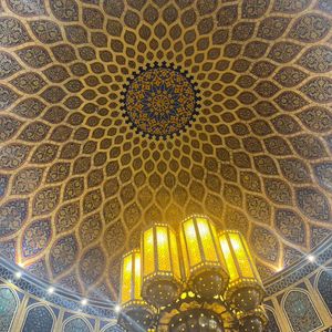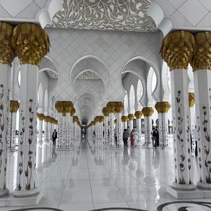 グランド・モスクでは女性は肌や体のラインが見えない服装、頭髪を隠すショールの準備が必要ですが施設の豪奢な内装でした