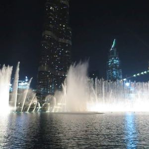 そして噴水ショーの見られるレストランで食事です。スマートカジュアルのドレスコードがあり、普段ラフな格好での旅行ばかりなので少し新鮮な気持ちです(笑)おしゃれして、素敵なレストランで食事、料理はどれも美味しくて、ボリューム満天!パクチーなどの香辛料がやや強いので苦手な方も見えるかもしれませんが、私は美味しく頂きました。カクテルを頼みましたが1杯80ディルハム、やや高いと思いましたが特別な雰囲気のなか、ちょっぴり奮発、おしゃれなカクテルでした!そしていよいよ噴水ショー、私達は真夏の訪問だったのでテラス席は使用出来なかったのですが、ショーの時はテラスに出て近くで見ることができました❗レストランのテラスの為人混みもなくすごく見やすいし写真も撮り放題です(笑)