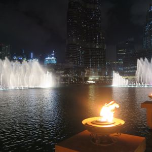 良いホテルでのディナーという事で、とても期待しながらツアーに参加しました。食事の席も良い所で1回目のファウンテンショーもしっかりと見る事ができました(*^o^*) ですが、ドバイでホテルの火災があったホテルが近かった為、食事途中に避難する様に言われてしまい、まともに食べることが出来ませんでした。そしてファウンテンショーも1度しか見れない事になってしまうので、それは嫌だな!という事で無理に食事場所へ戻り2回ファウンテンショーを見る事ができました!ホテルのスタッフの方も誰も居なかったのに、対応してくれたガイドさんのお陰です!