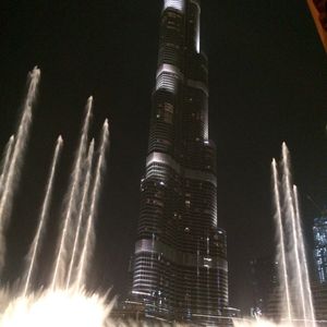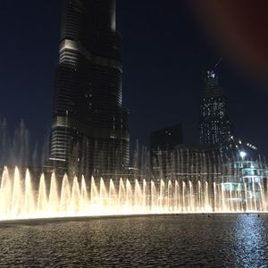 展望台から見たドバイ・ファウンテン。照明もあり綺麗。