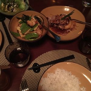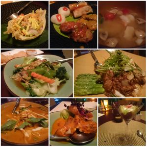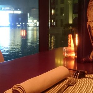 19時半に下に降りてきてガイドさんと合流、20時から予約してあるディナーに向かいました。とても静かな、高級タイ料理店。席はドバイ・ファウンテンが目の前にみえる1階の窓際席(夏場は暑すぎるのでテラス席はないようです)。自由にテラスに出ることもできるので、ショーが始まったらテラスに出ていけばもっと間近で見れます。2時間程いるので、ショーは4回見れました。