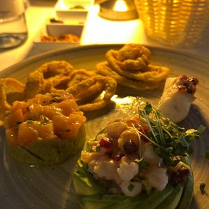 ハネムーンの最終日、ドバイ・ファウンテンが観えるテラス席ということで18時から予約をさせていただきました。コース予約だったので事前支払い済みで、料理を選ぶ手間なく楽ちんでした。
