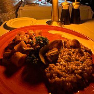 食事の量は、男性でも多いと感じるのではないかと思うほど多いです。朝はホテルの豪華なビュッフェで、夜はこのディナーを予約してたのもあり、昼ごはんをパンで済まして、お腹がかなりすいてる状態で臨んだにもかかわらず、全く歯が立たないほどの量の料理が出されました。頼めば、今ある料理はそのままにして、次の料理を出してもらえましたので、全体像を把握することができました。食べたい物を食べられる量だけ食べるのも良いかもしれません。最後が肉なので、リゾットとパスタの食べる量は少なめでいいと思いました。