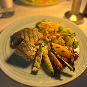 噴水ショーも観られましたし、テラスへ出ての観覧もできました。魚コースを選択しましたが、女性には多いかな。