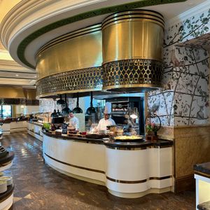 噴水が見やすい窓際の席をご用意してくださり、噴水の時間(30分に1回)はテラスに出たりもしました。お食事もとても豊富でおいしく、全種類は食べきれず残念。アルマーニホテルのスタッフの皆さんもとても素晴らしかったです。