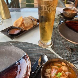 まずはアブダビへ。道中モータズさんの観光案内があり、その後アブダビまで約1時間半朝寝タイム。アブダビに到着し、モスク、カスール・アル・ワタンを見学。その大きさ、美しさに圧倒されました。お昼となり、エミレーツパレスで豪華ランチビュッフェ。豪華なホテルレストランでセレブ気分満喫です。食後はドバイへ。またここで約1時間半お昼寝タイム。ドバイでは、世界一美しいスタバ、未来博物館、ドバイフレーム、ドバイの王様の宮殿へ連れて行って頂き、ドバイモールの水族館と滝を見てから午後6時にティプタラへ。辛いのが苦手なのでマイルドマイルドにしてもらい丁度良い辛さに。出てきたもの全てとても美味しかったのですが、量が多いのと昼のビュッフェの食べ過ぎもあり、全部食べきれなかったのが残念でした。ビールを注文したのですが、1パイントのとても大きなグラスで出てきて1杯70AED。円安の今では3,000円です。。