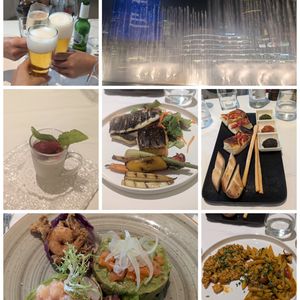 噴水ショーを間近に見られるテラス席で食事しました。魚のコースにしましたが、量がおおいので、すこしもったいなかったかも。日本人が多かったです。ライトアップした、バージュカリファ、噴水ショーは、一度は見ておきたいです。食事は美味しかったです。お肉は食べてません。お肉を食べている人もたくさんいました。