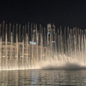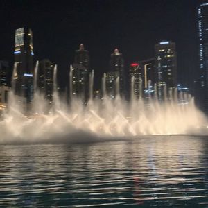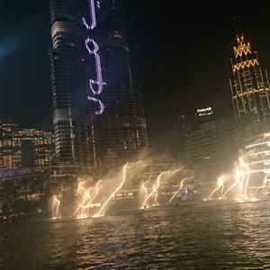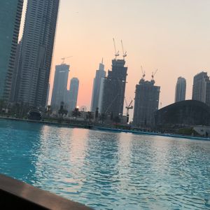予定の関係で17時30ごろの参加でしたので、夕日を見ながらの乗船となりました。様々な音楽で噴水が踊ってるような感じで感動しました。特にバージュカリファにライト?みたいなので、文字を浮かび上がらせていてとても神秘的でした。夕日を見ながらもいいですが、次はやはり夜に行ってみたいですね。チケット引き換え場所はドバイモールの地下ですが、迷わず行けました。特にパスポートは見せる必要はなかったです。値段もドバイのツアーの中では手頃なのでぜひ参加してみてください。
