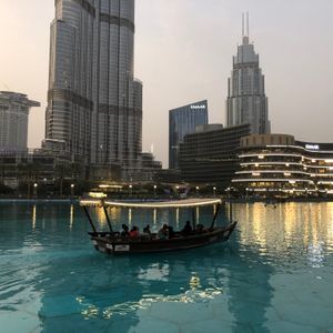 ゴンドラのような船に乗ってドバイモールの周辺を楽しめてよかったです!船には屋根も付いていたので暑いドバイの気温でも日差しを遮れて風も感じれて涼しかったです!噴水ショーは音楽に乗せて大量の噴水がシンクロしていて驚きました!ドバイモールから見ている人もたくさんいて人気のアトラクションなんだなあと感じました。夕方17時からのに参加したのですが夜だとライトアップでさらに綺麗だと思います。とてもいい思い出になりました。