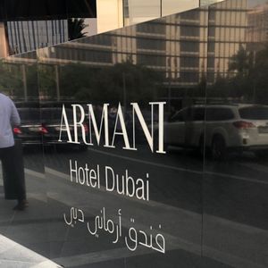 Burj Khalifaの中のアルマーニホテルの中のレストランです。ドバイモールから直接入れると思ったのですが、モールの案内板には外に出るように表示され・・暑い中、タクシーの横を歩きました。高級ホテルに歩いて入るのは私たちぐらいだと思います。