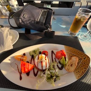 ハネムーンの最終日、ドバイ・ファウンテンが観えるテラス席ということで18時から予約をさせていただきました。コース予約だったので事前支払い済みで、料理を選ぶ手間なく楽ちんでした。