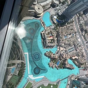 ドバイーモールのチケット交換所の場所が分かりにくく。指定時間に間に合わないのではと心配しましたが、インフォメーションや店の人に聞きまくり、やっとたどり着きました。パスポートは不要でした。値段が高い割には、展望台の高さはそれほどでもなく、台北101と大差ないじゃないかと、あまり期待していませんでしたが、砂漠の砂が舞っているのか、高温と湿度のためなのか、外の景色は黄色く霞んでおり、それがまたなんとも異国情緒を感じさせ、アラビアの世界に来たんだなあと実感できました。