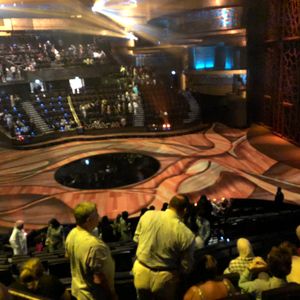 9月の旅行3日目の18時30分開演を予約して行きました。予約時に座席指定まではできなかったので、見えずらい席だと残念過ぎるからと、ゴールドシートを予約しました。実際に会場へ行ってわかったのですが後ろのほうの席でもちゃんと見れるよう、座席の一高さを配慮した円形の劇場でした。なので割安のブロンズ席でも大丈夫だと思います。開演時間の少し前から、ステージの案内役ピエロがオープニング時間が過ぎても同じ調子でジョークを繰り広げていて、数十人ほどお客さんも少し遅れて入ってきたり、ゆる~い感じで始まりましたが、開始10分後くらいからガラッと変わり、高い天井大きな扉大きなステージが下りてきたり、滝のような水が流れ落ちたり、会場の真ん中の水が急にあふれてきたり、広い空間を最大限使った演者さんたちのパフォーマンスが圧巻で、どこに注目べきかわからなくなるくらいスケールのある圧巻のパフォーマンスでした。テンション上がりっぱなしの大満足なショーでした。お勧めです。