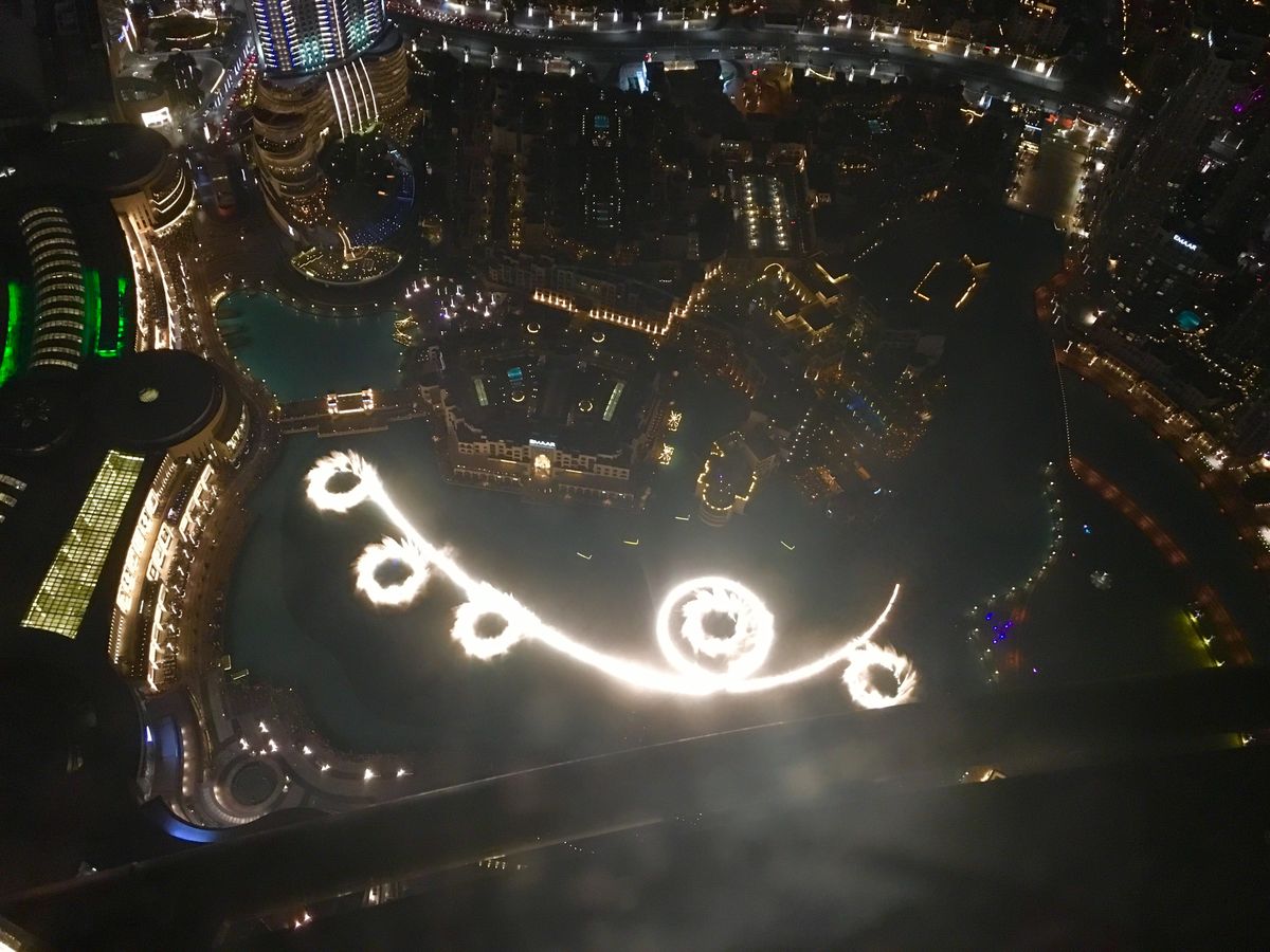 噴水ショーも上から見えましたが、こちらについては124・125階の方が近いので綺麗に見えます。日没時間を考慮していたので夕景〜夜景を楽しめました。