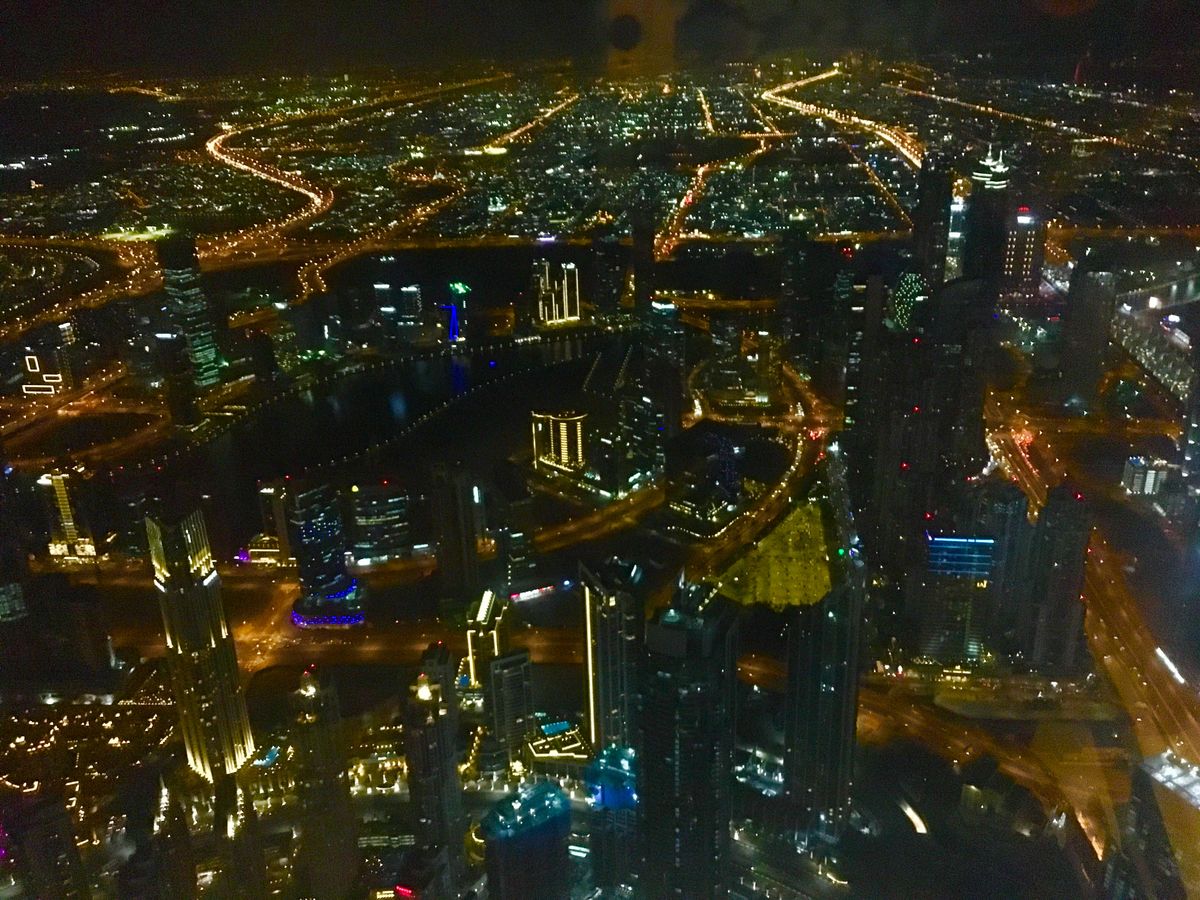 やっぱりドバイに来たからには、ブルジュハリファに登りたいと思い、お得な前売りを買いました!日曜18:30に申し込みして、少し早めに行きましたが正解でした。ドバイモールが広すぎて、入口に迷いギリギリに。やっと着いてチケット引き換えましたが、その後登るエレベーターまで大混雑でした。登ってからも、どこも混雑で降りるのも時間がかかりました。待ち時間なく登るなら、優先チケットを買うことをオススメします。また夜景も綺麗でしたが、日中の街中で見渡せる時に行きたいと思いました。