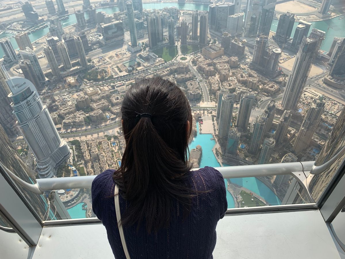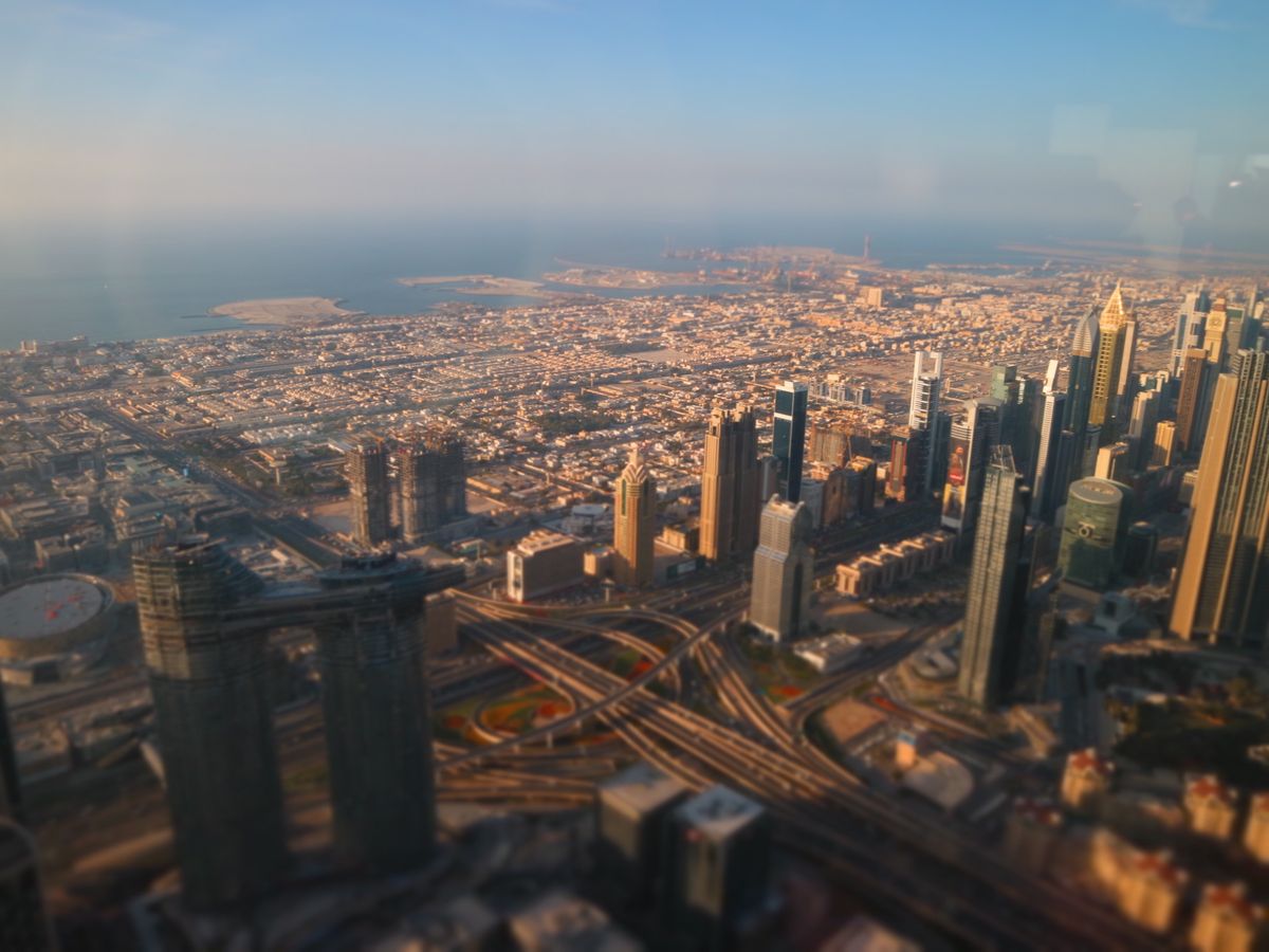 メトロに乗り、ドバイモール駅へ。直ぐに、この高い建物が目に入る。案内掲示を見ながら迷わずに受付所へ。スゴい速さのエレベーターに乗り、鼓膜の違和感を治しつつ124階へ。そこには、初めて見る絶景が!まるで周りはミニチュア模型のよう。お決まりのポーズで写真を撮って、満足しました。