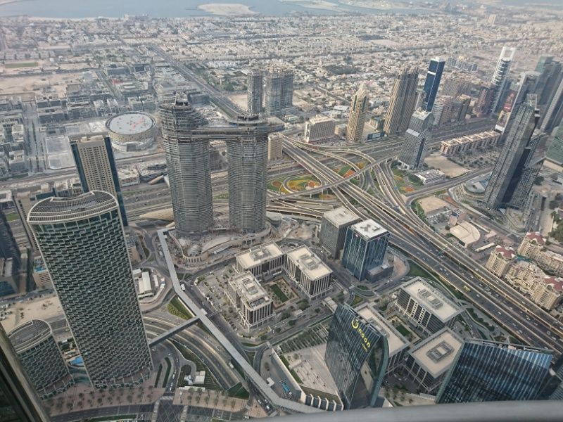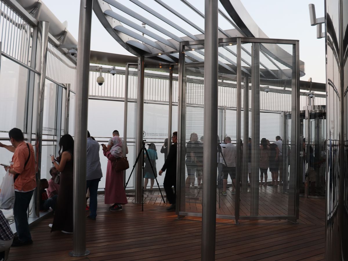 年末だったこともあってか、かなり混んでいました。15:00からの入場で14:30までに受付にくるようにバウチャーに書いてあり、余裕をもって14時前くらいに受付に行ったところ、当日券は売り切れているにもかかわらず、前売券をもっている人とオンライン予約をしていてチケット引換をする人たちで長蛇の列ができていました。オンライン予約をしたことで安心していましたが、モールに着いてすぐにチケットの引換だけ行っておくべきだったかなと思います。結局セキュリティチェックに辿り着くまでかなり時間がかかり結構疲れました。ただ、セキュリティチェックを通過してからは比較的スムーズに進めたのでよかっです。125階の展望台行きの人たちはセキュリティチェック通過後も延々と行列しており大変そうでした。148階からの景色は素晴らしいです。色んな方向からドバイの街並みを見渡すことができ、写真もたくさん撮りました。時間帯的に夜景は見れませんでしたが、十分楽しめました。
