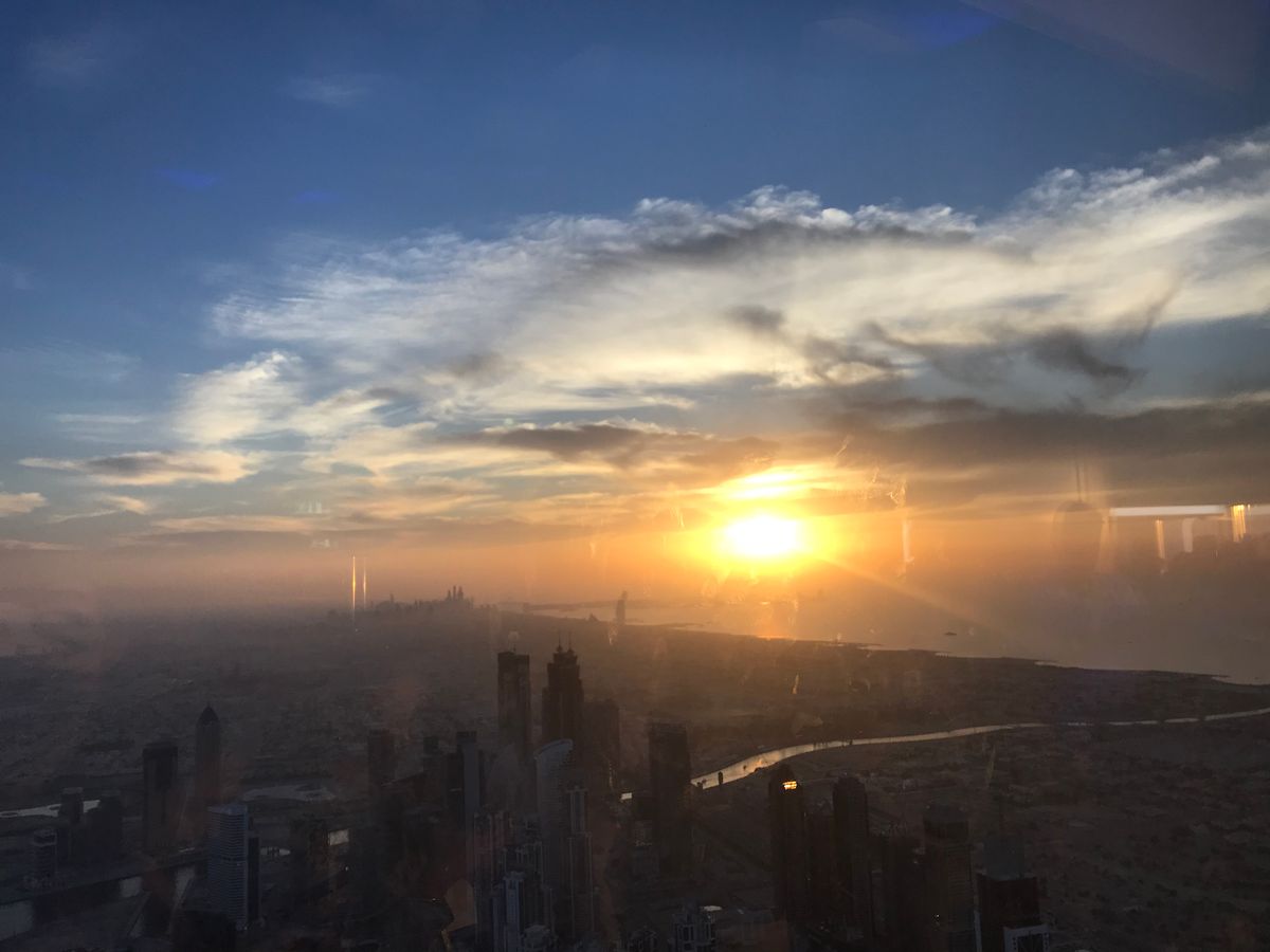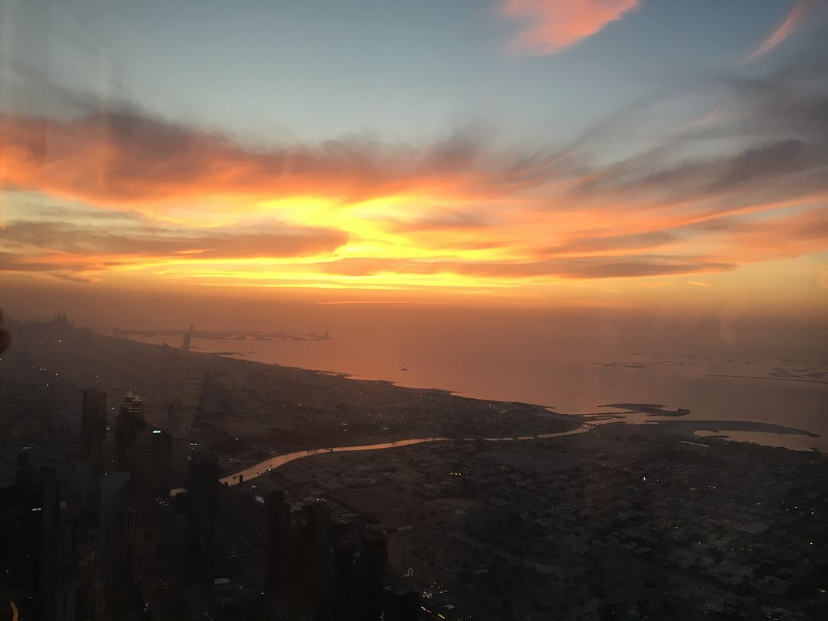 バージュカリファで行われる年末カウントダウン前に展望台からの景色を楽しめた。夕方17時からにしたのはサンセットを見る為であったが、12月31日だったせいか20時頃まで滞在する事ができた。148階にはトイレもあり、ソフトドリンク・コーヒー・スナック等が用意されているので1-2時間の滞在は苦にならない。360°のパノラマビューはどこを見ても素晴らしいが、海沿いの景色からみるサンセットは素晴らしかった。