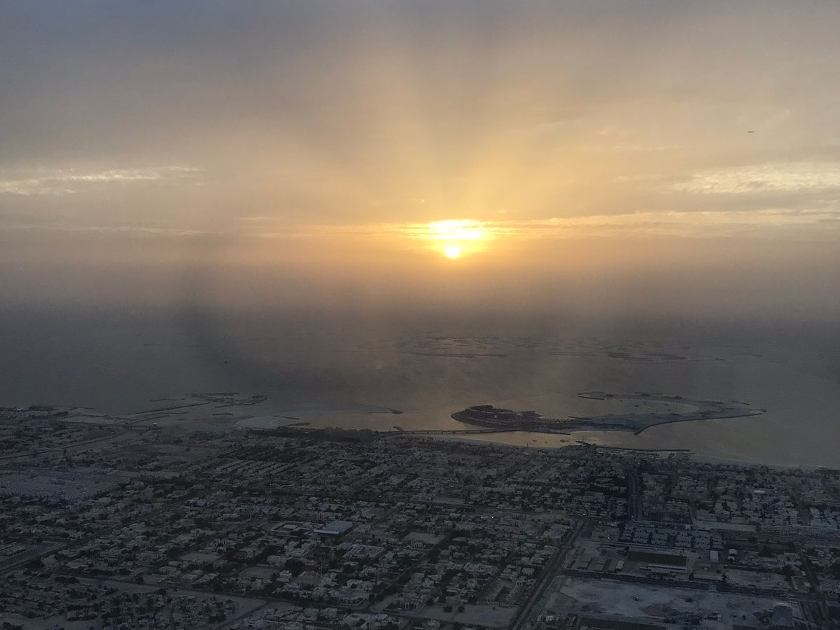 世界一のビル。ドバイに来たからには絶対に登らなくちゃです。12月31日の夕方にに合わせて予約して行きました。長蛇の列の中、並ばずにビップ待遇で入る事が出来たので気分も上がります。カウントダウンの花火を見るためにもう夕方前から会場に入って行く人の流れも上から見えました。夕日も綺麗でした。