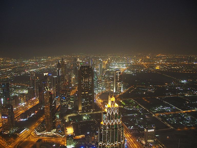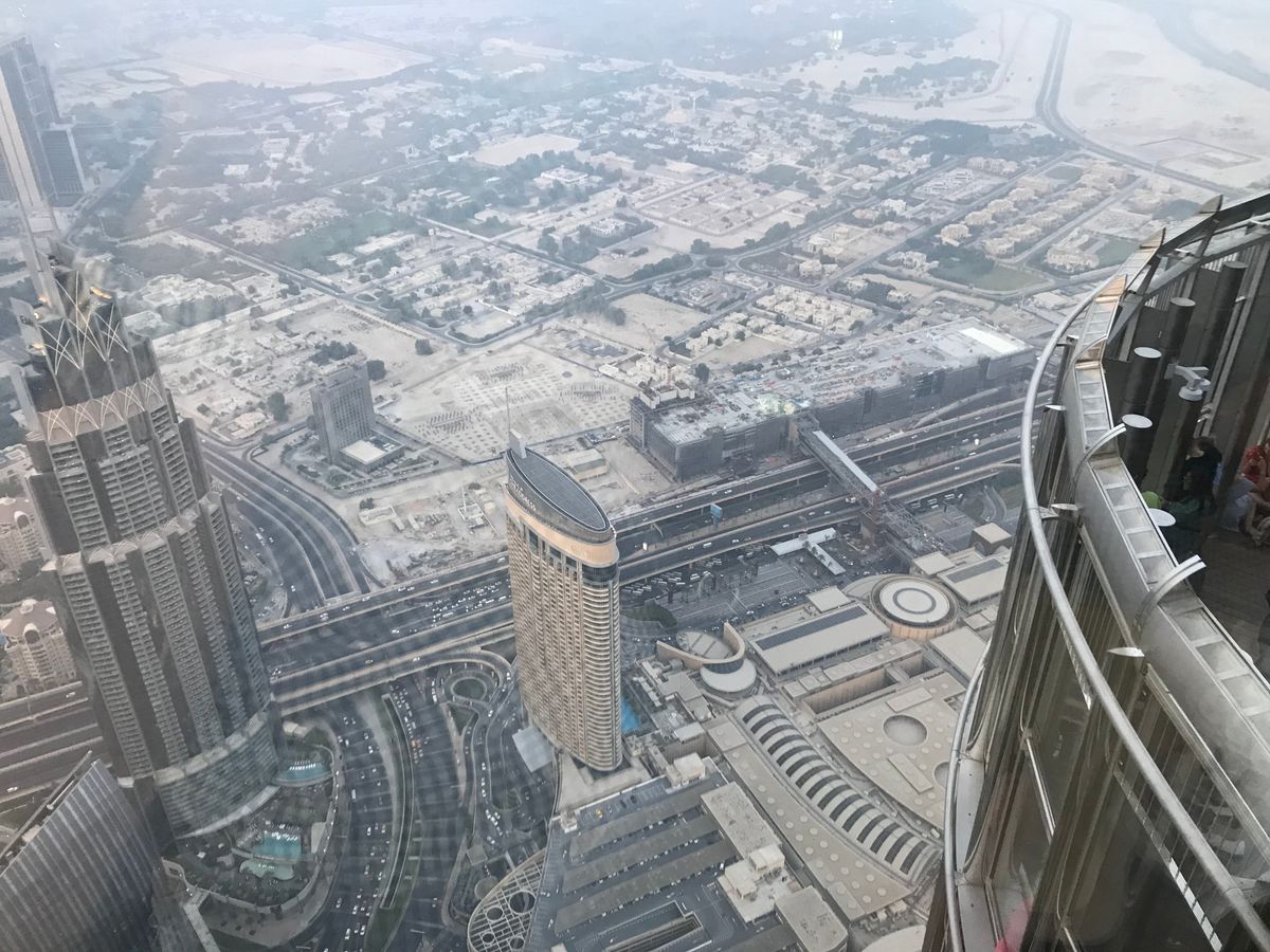 8月に参加したので、ドバイはガスっていて、眺望はあまりよくありませんでした。どうもドバイの夏は、毎日こんな天気らしいので、125階の展望台で充分だと思います。エレベーターが124Fまで1分で到着します!