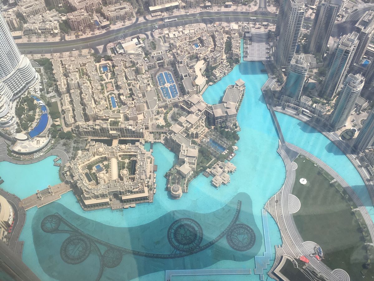 噴水も上から見たし、そろそろ降りるかなと125階に行くと大混雑。124階へも降りてショップを見たりしましたが、とにかく人が多いし、外の景色が低い!148階からの景色を見た後だと周りのビルとの高さの差が少なくなってますから、突き抜けた感じが足りなくて満足出来なくなってしまうんでしょうね、きっと。地上階へ戻るエレベーターも大行列してましたが我々は優先ルートでスイスイ…これも本当にポイントが高い。今後行かれる方に聞かれたら躊躇なく148階へのツアーをお勧めします♪