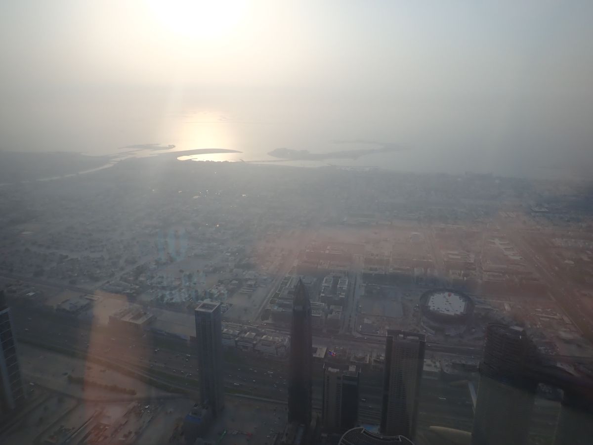 土地柄仕方ないけど砂煙でスッキリしなくて残念。148Fのラウンジも人が多くて落ち着かなかった。見晴らしは良くて楽しめたのは間違いないですが。
