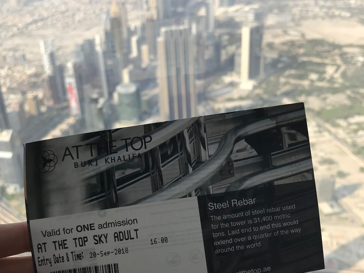 夕陽と夜景を見たかったので、ネットで日没時間(「日の入り ドバイ」でググるとすぐ出ます)を調べて、その時間に合わせて予約しました。