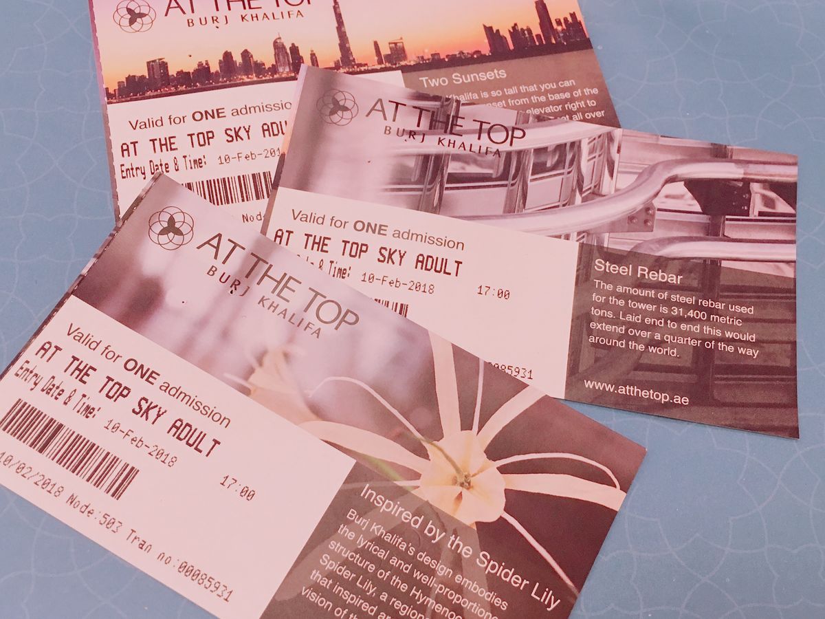 飛行機で成田からドバイに到着後(早朝)、ホテルへのチェックIN時にチケットをフロントにて無事受け取ることが出来ました。 その後、ベルトラの市内観光ツアーに参加した後、ドバイモールにて解散し、バージュ・カリファの受付へ。(16:30入場)