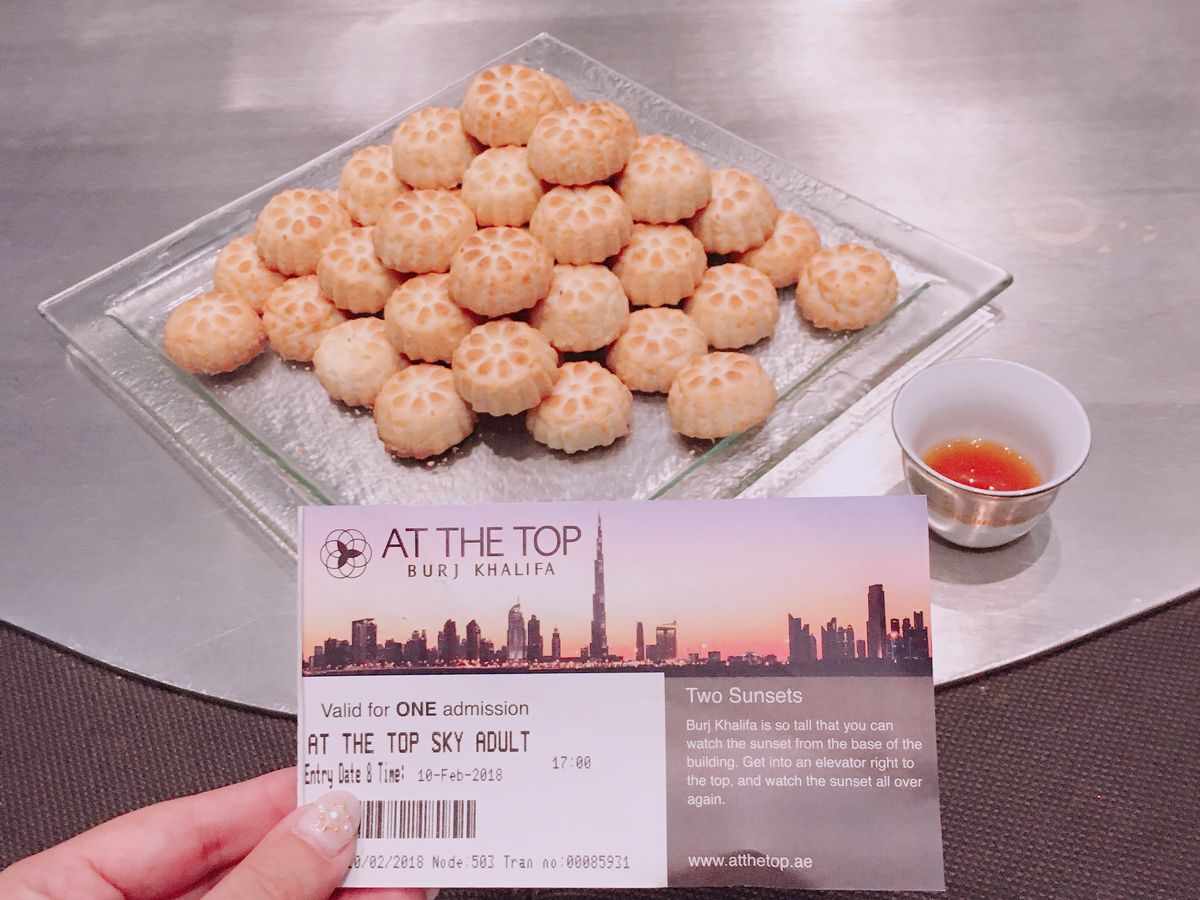 せっかく行くならと思いアット・ザ・トップを予約しました。前室ではアラビアンコーヒーとアラブとお菓子が振る舞われ、148階に着くとジュースとまた別のお菓子がもらえました。どれもとても美味しかったです。