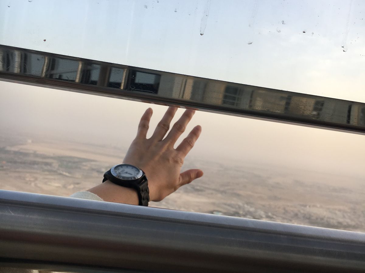 なかなか高さを実感できないのも、ちょっと残念!(降りてきて、下から見上げて実感できました)。せっかくドバイへ来た記念に登るには意味がありますが、少し消化不良でした。ぜひ、時間の余裕を持ち、期待しすぎず登るのが良いです。それから、予約は絶対忘れずに!最終近くの23:00まで予約はいっぱいでした。