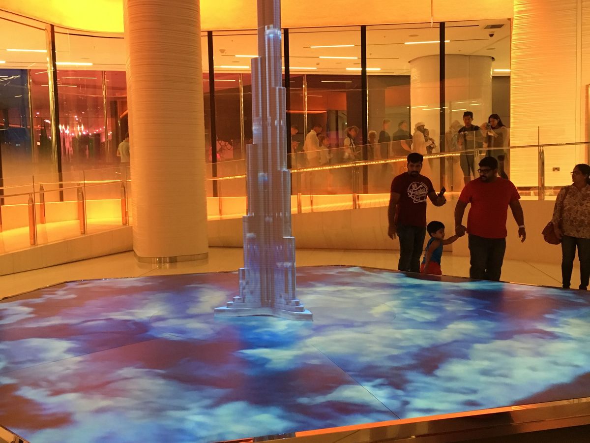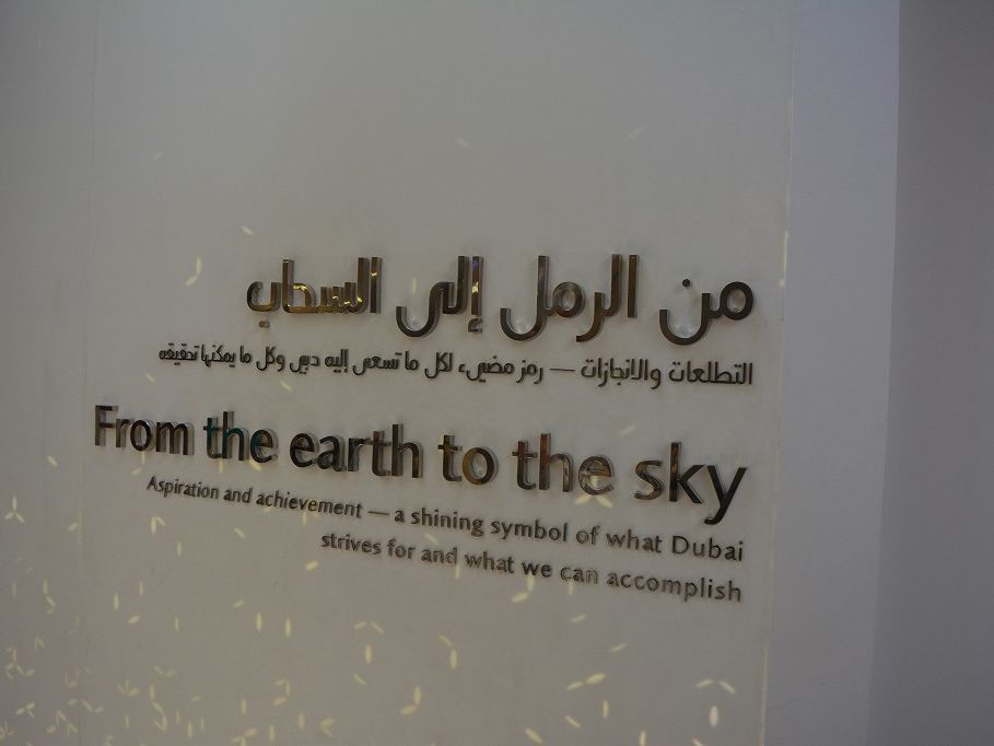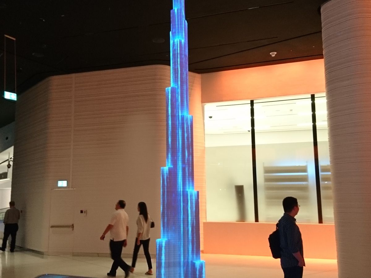 50階建てビルの三倍!?ですよ。入場時間は決まっていますが、降りる時間は決まっていないので、心ゆくまで高所からの景色を堪能できます。当日券売り場は結構な混雑でしたが事前予約のバウチャー引き換えはスムーズに進みました。怖がりなので、エレベータに乗る前にやっぱり怖い、やめようかなどを呟いていたら、スタッフさんがエレベータに乗っても振動もないし、液晶モニターの説明を見ていたら到着しちゃうからと言われ涙目で乗り込みましたが、驚くほどスムーズ。エレベータだけでも経験する価値がある価値があると思いました。砂漠にあれだけの建造物を建て都市を作ったドバイは一見の価値があると思います。