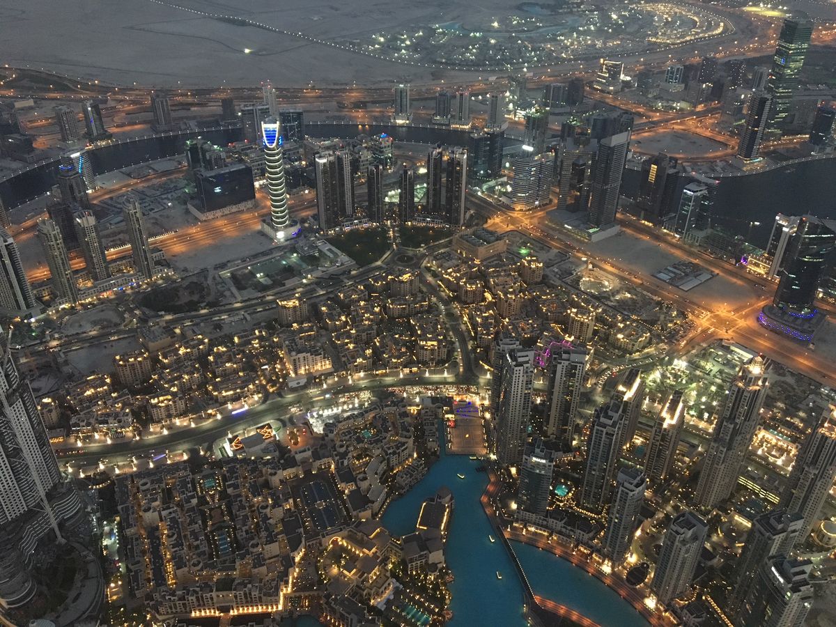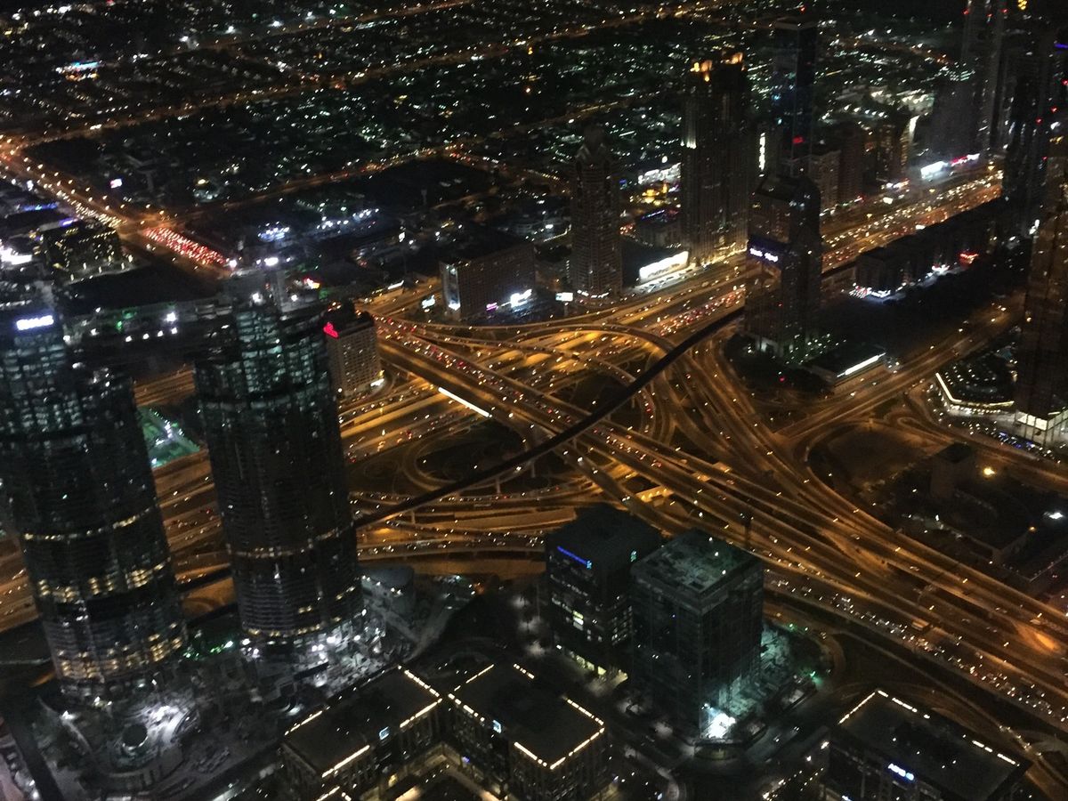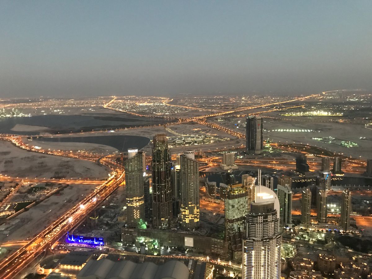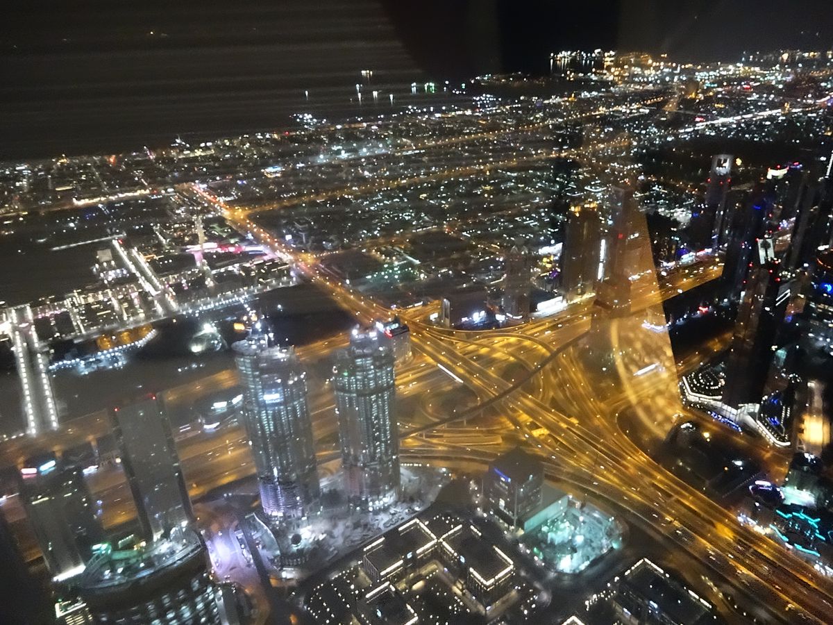 昼間は遠くの砂漠の方まで見えてドバイの全体まで分かるような感覚でしたが、夜は光を放っているモノしか見えませんから、夜景はそれはキレイですが視野的に小さく感じます。