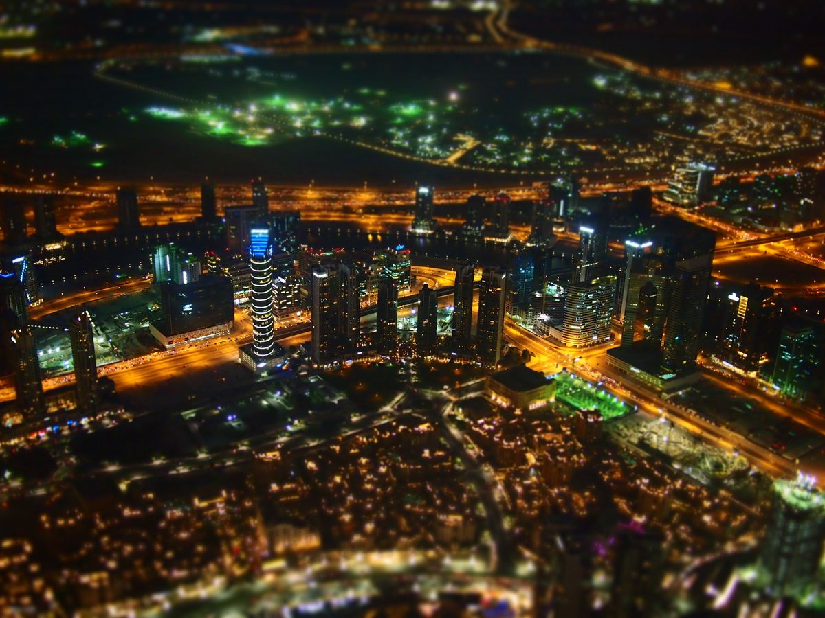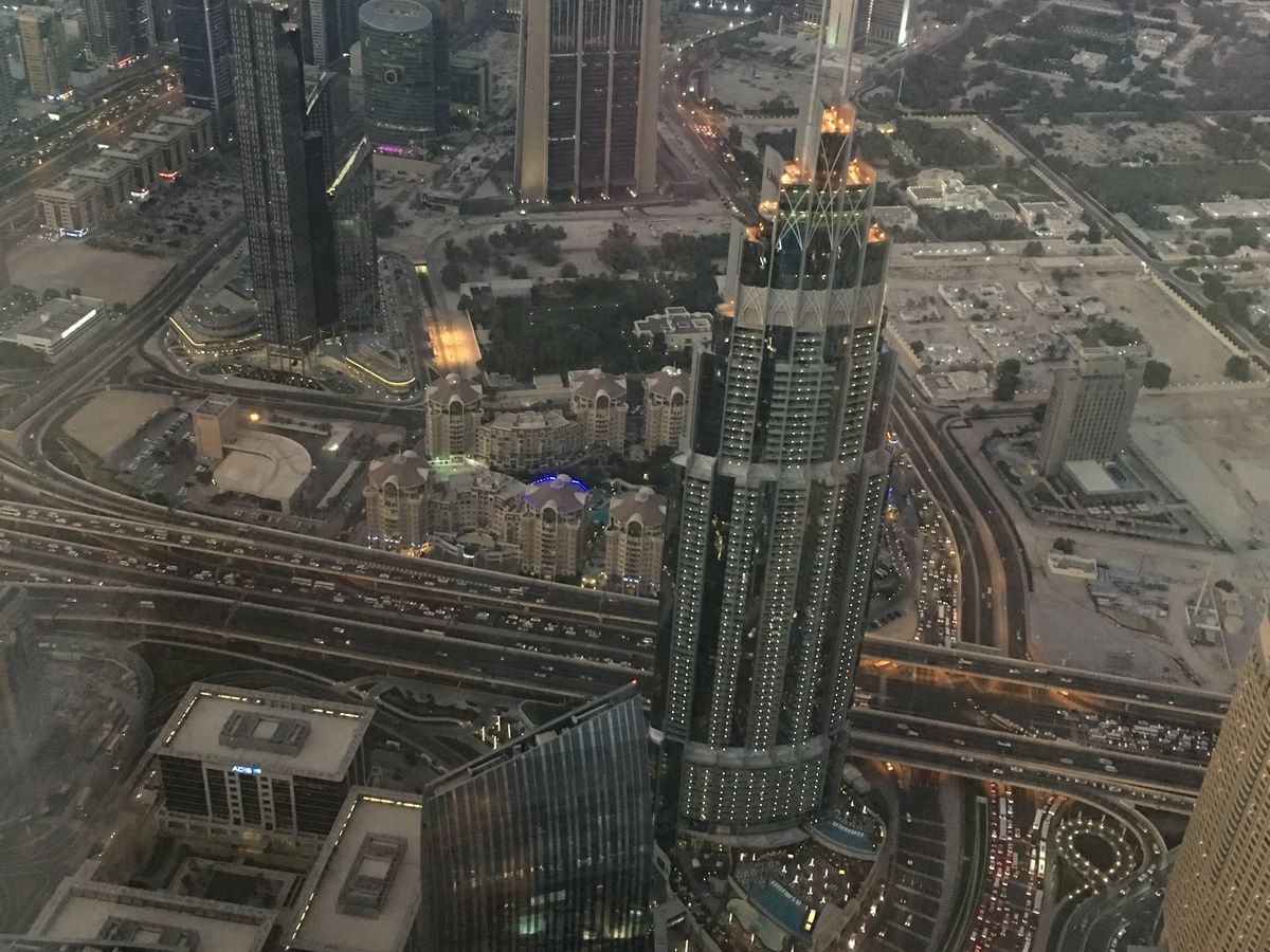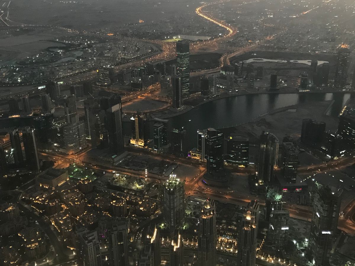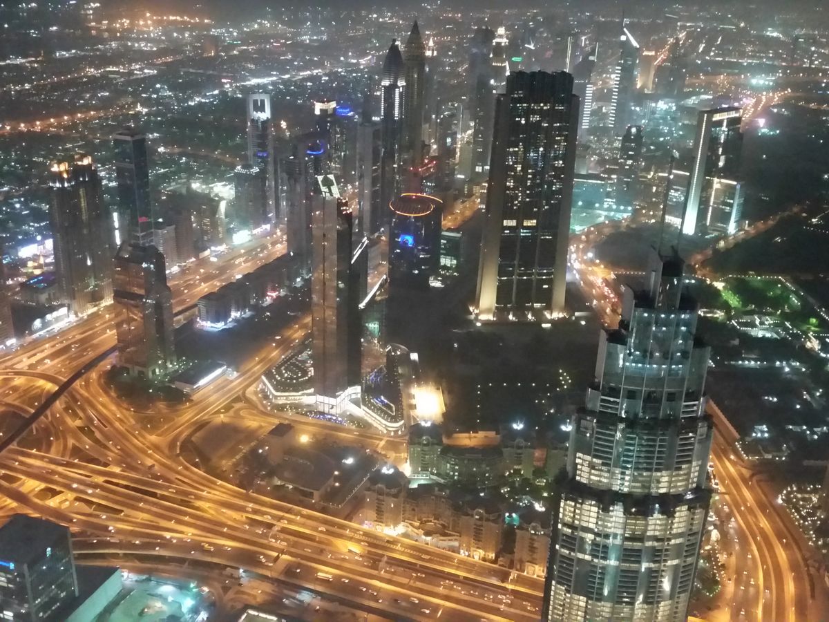 昼間は遠くの砂漠の方まで見えてドバイの全体まで分かるような感覚でしたが、夜は光を放っているモノしか見えませんから、夜景はそれはキレイですが視野的に小さく感じます。