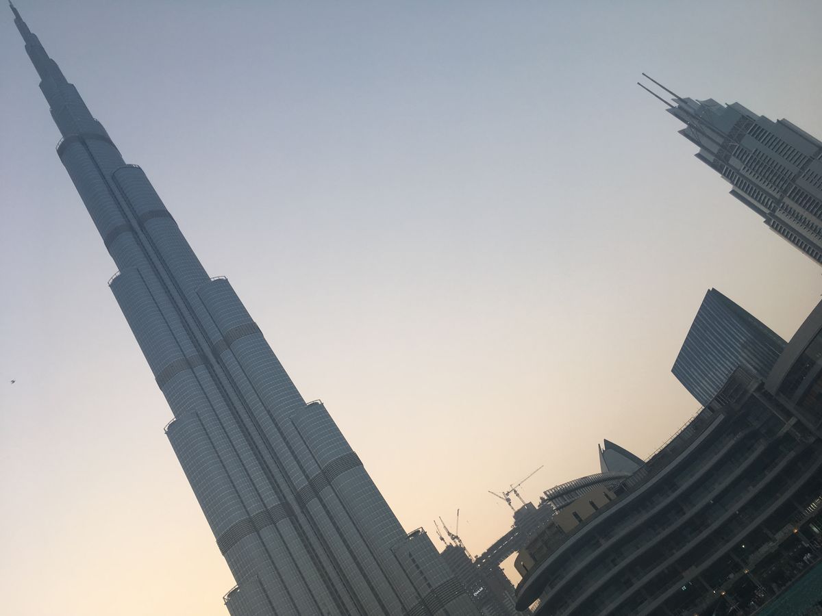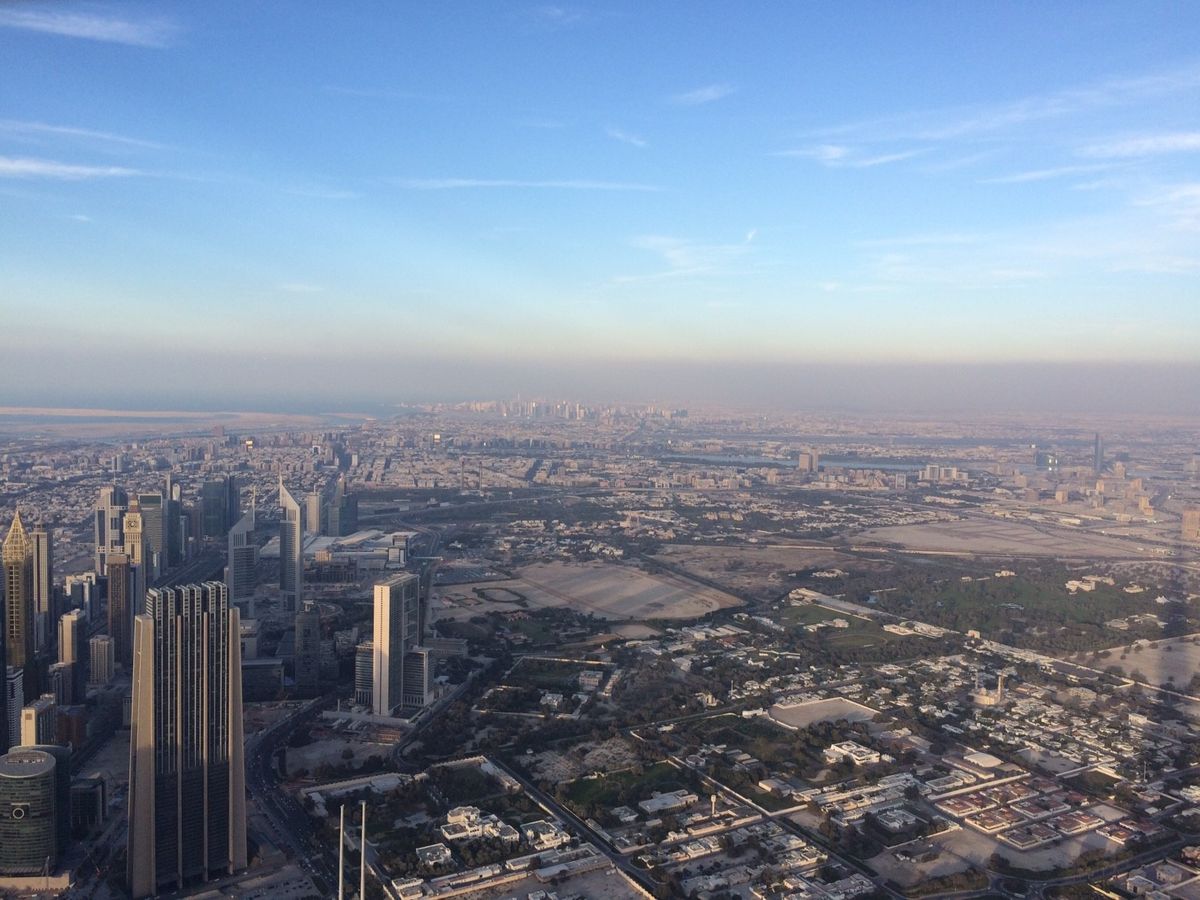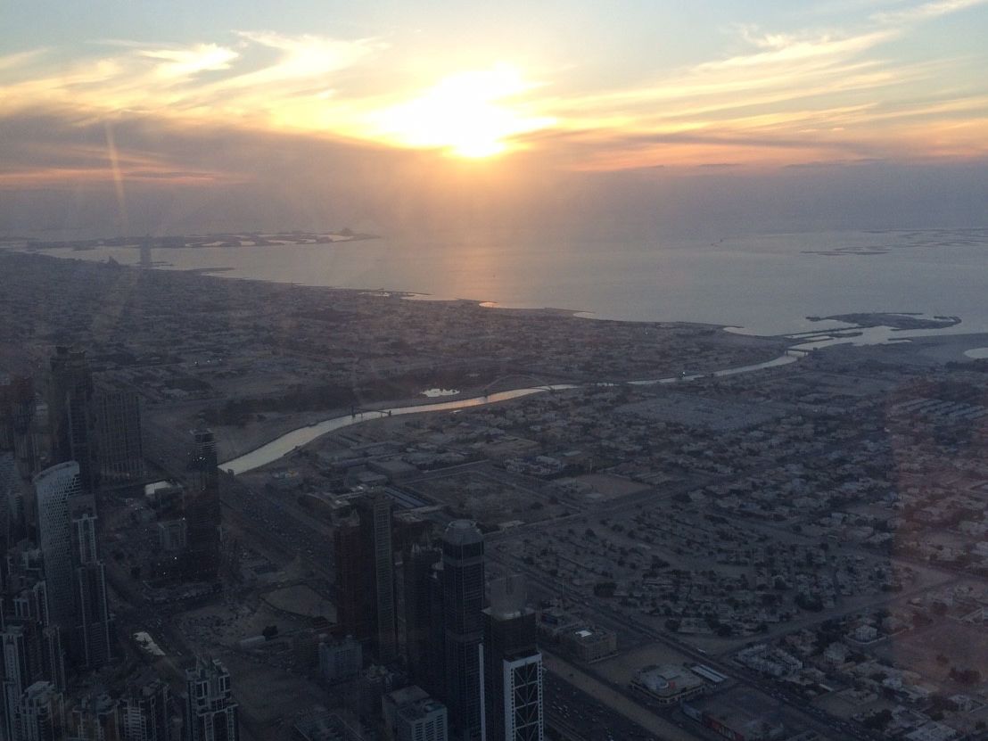 日没の前後で刻々と色が変わるドバイの街並みが綺麗でした。