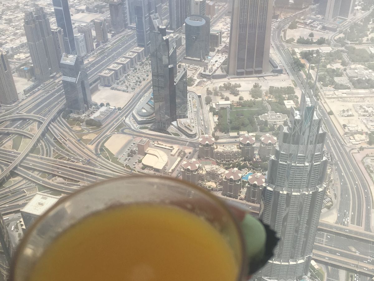 せっかくなので金額は高いけど148階の方にしました。17時予約で、チケットを取ってあるって言ってるのに結局混雑してるチケットカウンターに並ばされました。事前に買ってる意味はあったのかな?その後、148階の人だけ待合室みたいなところに通されて少し待機。不思議な味のお茶とナッツみたいなお菓子を出されて、登ります。景色は最高でした。時間制限は特になくて、口コミにあったようにマカロンは美味しかったです。窓際のソファーは前の人がなかなか席を立たないので、それも少し空くのを待ちました。写真だけ取って座るのを諦めて降りちゃう人も。結局1時間くらいはいたかな。124階はほんとうに混雑していたので、確かに金額は高いですがせっかくドバイに行ったんだし、こっちにしてよかったかなーってかんじです。デッキに出てみると、風が強くて怖かったですがいい写真が撮れました。