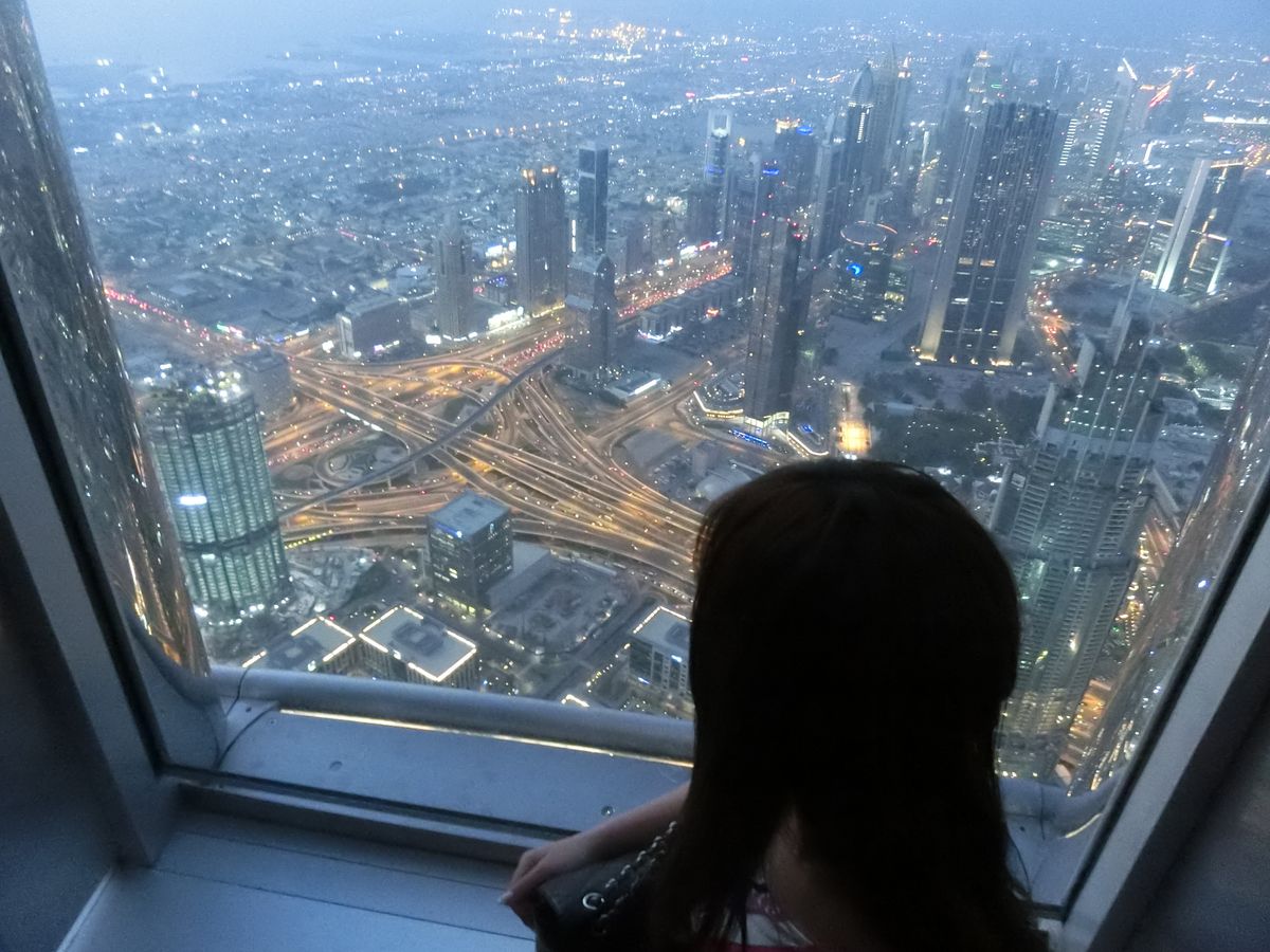 ハネムーンでドバイに行きました。ドバイに来たら絶対登らなあかん思ってネット予約でチケットを事前に購入しました。当日は予約していた為か行列に並ばず、すぐに入れました。頂上に着くと綺麗な夜景が。昼間と迷いましたが夜に登りました。建設中のビルや工事中の土地が多かったせいか、少し殺風景にも思いました。夜景なら大阪のハルカスの方が綺麗です。でももう2度と登れないと思うので凄くいい経験ができました。
