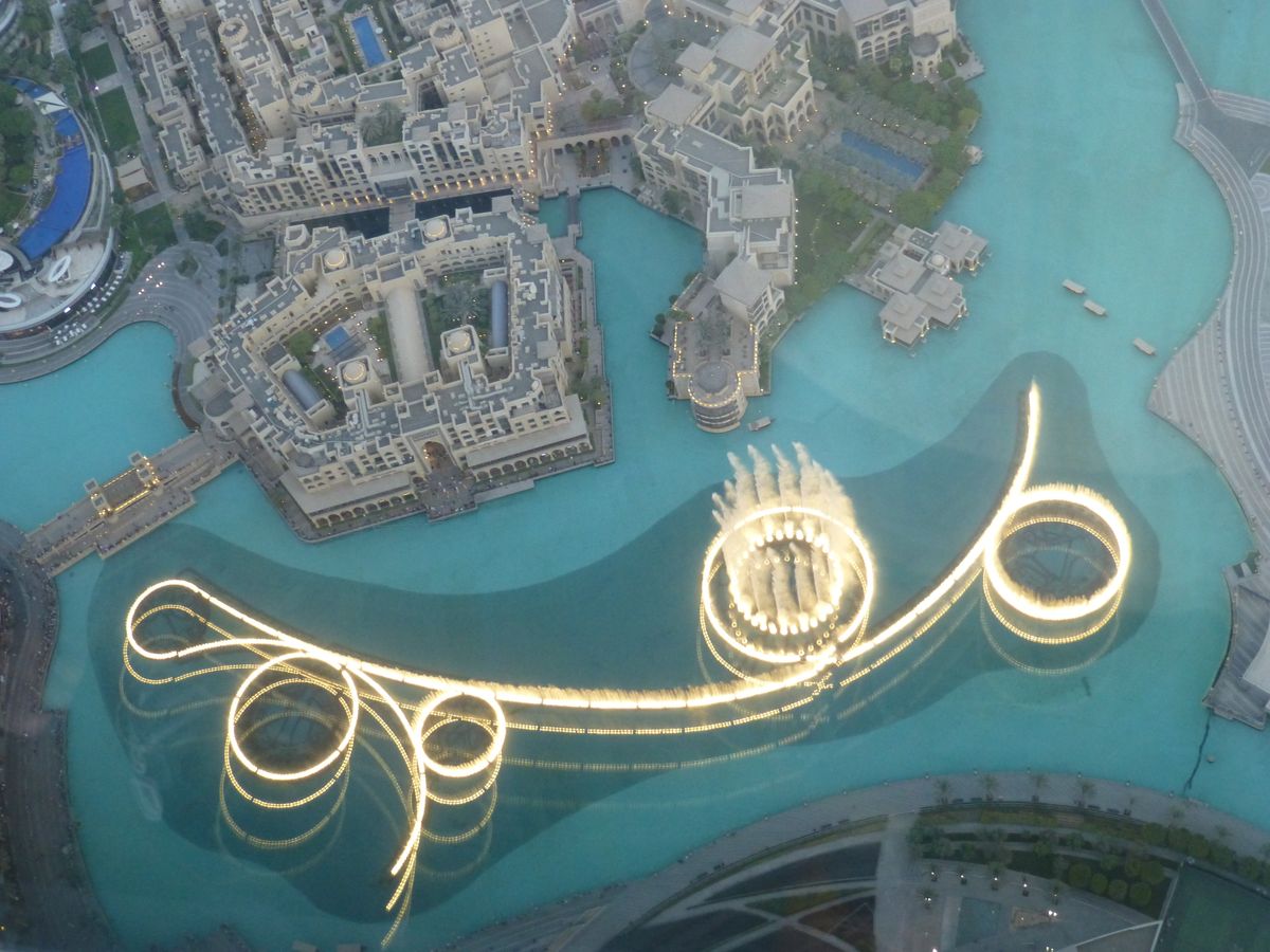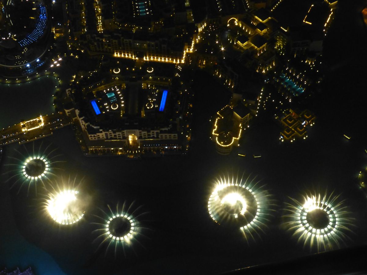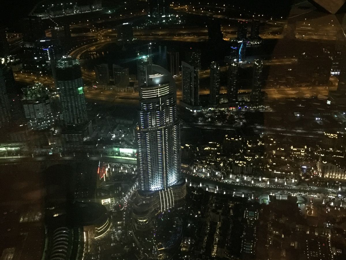 124階と迷いましたが思い切って148階にしました、専用ルームで待機はただ座ってお菓子などあるので食べるのですが誰も手を出してませんでした(笑)そこからエレベーターで125階そこから乗り換えて148階です、夜8時に予約したのですが上に行ったのは8時半でした、夜景が凄く綺麗でした、一部の場所は窓の部分に隙間が空いてて手を外に出して写真撮れたりしますが、カメラ持つ手が超緊張します(笑)ただ砂漠の国なので窓が汚かったのががっかりです、これはどこの窓も汚かったです、Funtainも上から撮れます。