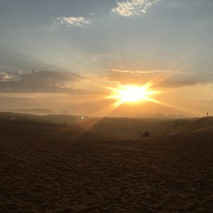 日の出の時間に着いたので半袖だとちょっと寒いけど砂漠と朝日絶景でした。ラクダも楽しかったです!おススメ!
