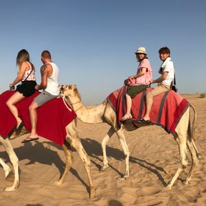体験談を見て酔い止めを飲んで参加しました。デザートサファリはスリリングな体験を味わいました、前の席に座ったけど時間が長くて最後の方は少し飽きてぐったり。もう少し短くして、他のアクティビティーに時間がとれたほうがよかったです。ラクダ乗りはあっという間です。あとは鷹のショー、サンドボード、水タバコアラビアコーヒー、簡単な朝食がついています。相互的にまぁまぁでしょうか。都会の建物とは別の体験ができるので一度体験して見る価値はあると思います。