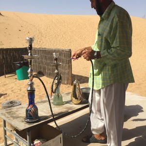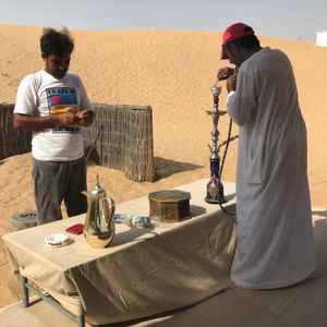 ・そこから移動しキャンプ?地へ。 アラビックコーヒー(小コップ)を飲みデーツを食べ、水タバコを体験。(早朝であり人もいないことから、ただ立ち寄った感程度の雰囲気で終了。ここを楽しむら夕方や夜のが良いかも。)