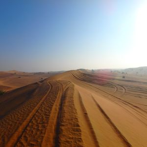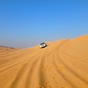 2016/6月に参加しました。7:30AMのホテル迎えから11:00AMのホテル送りまで3.5時間という短めのツアーでしたが,内容は全てバッチリ組み込まれていて大満足のツアーでした。4wd車でお迎えのあと,まず40分ほどかけてドバイ郊外の砂漠に向かいます。ドライバーさんは英語オンリーですが色々な話をしてくれて気分を盛り上げてくれます。ダウンタウンを離れるにつれてだんだんと砂漠らしい雰囲気に…! そしていつしか砂漠の一本道に入ったかと思うと,いきなり道路を外れて砂漠に突入! 前触れもなく突然始まりましたデザートサファリ!(笑) いきなりかよ!と突っ込みつつもそこからはもうノンストップで砂漠を爆走します! 砂を巻き上げたり,急な坂道を下ったり(というか滑ったり?)迫力の体験です。タイヤが砂の上を滑るように走る独特の感触がしっかり伝わってくるので不思議な感覚です。そのままどんどん砂漠の中へ突き進んでいくといつの間にやら周りが全て砂漠の景色に。ここで車を降りて写真撮影タイム。自分たちで歩き回って好き勝手に撮ることもできますし,カメラ渡せばドライバーさんも快く撮ってくれます。幸いだったのが,見渡す限り我々の車以外の車も人も全くなく砂漠を独占できたことです。(空いてる午前ツアーのメリットだそうです) 写真撮影後,またしばらく砂漠を走りキャンプへ到着。キャンプでは大きなラクダがお出迎え。ラクダに乗ってキャンプ周辺を散歩しました。ゆっくり歩く大きなラクダの背中から見る砂漠の景色はまた一味違って良い雰囲気です。その後キャンプ内でアラビアコーヒーとデイト,シーシャを味わいながらしばし休憩。人工物が見当たらない砂だけの景色と,人口音が聞こえない静かな空気の中にいると,砂漠の広大さをより感じます。キャンプでの休憩後,車に乗り込みホテルまで送ってもらえます。これでツアー終了。ランチ時間前にはホテルに戻ってこられるので,午後の時間たっぷり有効に使うことができました。短時間で砂漠の楽しみをひととおり味わってみたい方には大変お勧めのツアーかと思います! こんどはBBQ付きの夜ツアーにも行ってみたいと思いました。