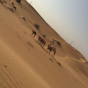 砂漠のサファリ最高です!!日本では体験できない素晴らしいツアーです。広大な砂漠をまるでアトラクションの感覚でアラブの風を感じ疾走します。ラクダに乗るのも初体験でした。かなり高い目線からの眺めもいいですね。(ちょっと不安定な感じですが)