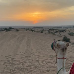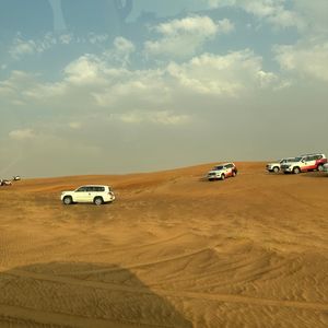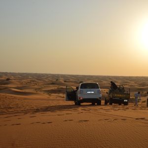 トータル的に最高に楽しかった!ホテルピックアップから、指定の場所までのせて行ってもらって40分ほど待ち。その間バギーに皆んな乗るみたいだけどちょっと高い。40分後、始まりましたランクルにてジェットコースターなみのドライビング。酔い止め必須。運転手さん最高におもろかった。日本では経験出来ない砂漠、360度砂漠。素足で砂漠を歩く、気持ちいい、最高の景色。一生に一度は見て欲しいキレイな夕日。その後、BBQ会場へ。ラクダに乗れる、シーシャ、ヘナタトゥ、ハヤブサ腕に乗り写真付き。とにかく楽しくてホテル帰って爆睡、絶対参加必須です。