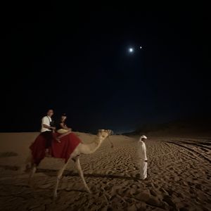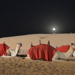 早朝の真っ暗な中、月明かりを便りにラクダに乗って砂漠を歩くのはとても幻想的で他では経験出来ない貴重な体験でした。