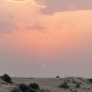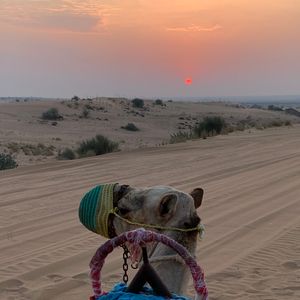 15時ごろに送迎の車がリビエラホテルの前に来てくれました。直前にベルトラのスタッフから到着時間の連絡がありました。運転手さんは口数少なく何も説明なく出発。笑 他のホテルで他の参加者をピックアップして砂漠へ。サンドバギー体験ができるところで一旦車を降りました私たちはバギー体験はせず、水 を飲んで休憩。その水が高い!!笑。砂漠なので貴重ですものね。そのご また車に乗り、砂丘ドライブ。何も言わずに始まりました。運転手さんが頑張って坂を上がったり、下がったり。思っていたより迫力はなかったかな。そしてサンセットの時間帯になりを降りてフォトタイム。良い写真が撮れました。その後は、ディナーとショーを楽しめるキャンプサイトに到着。ラクダ乗り体験を一瞬だけして、ディナー会場へ。正直ビュッフェご飯は微妙ですが、シーシャやファイヤーショーなど楽しめました。