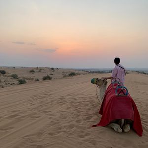 砂漠の中家族だけでラクダさんに乗り砂漠も貸切状態で最高でした。