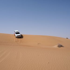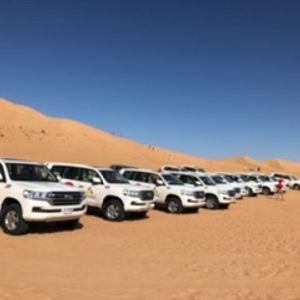 ランクルに6人位乗り合わせて砂漠ドライブ。予約前は自分で運転したいと思ってましたが、やはりプロに任せた方が激しさを体感出来ると思います。