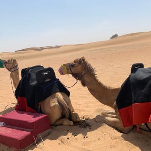 22時間のトランジット間で 参加しました。空港近くのホテルに15分前に到着、と同時に お迎えが来ました。ガイドの方は 好感の持てる方で、リザーブに行く途中、色々な情報をくれたり、質問に答えてくれました。砂丘ドライブは、スリル満点で とっても良かったです。砂まみれは覚悟していたにもかかわらず、あんなに風があるとは予想もしていなく、不快でした。そんな中で、味わう余裕も無く 朝食を頂きました。残念だったのが、ラクダ乗りです。たった2頭しかおらず、1ー2分乗れただけでした。もっとたくさんのラクダが見れるのかと思っていたので がっくりです。午後からの観光を、早目に終えて、空港でシャワーを浴びてから飛行機に乗りました。私的には、トランジット間でのデザートサファリは、無謀でした。しかしながらも、短時間でのドバイで、経験出来たので良しとします。