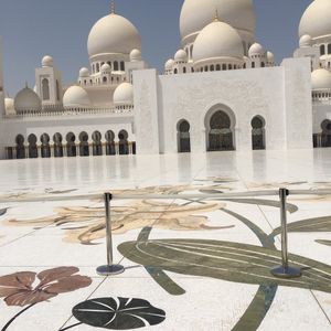 モスクに入ったのは初めてですが、この世のものとは思えないほど綺麗でした。床からすべて真っ白な大理石で、美しいタイルのモザイクにシャンデリア、世界一大きなペルシャ絨毯と溜め息の出る美しさでした。